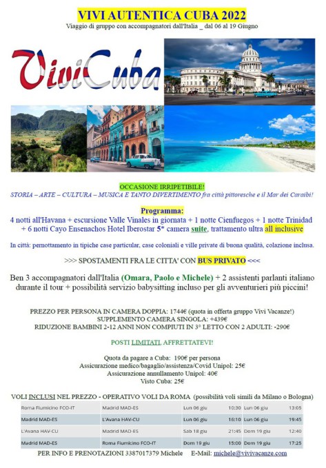 E' arrivato il momento più atteso dell'anno, lo spazio che ci prendiamo per riempire la nostra anima di gioia e colori, è arrivato il momendo di Vivere Cuba con un fantastico viaggio di gruppo